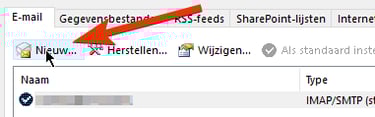 Vervolgens kan je op Nieuw... klikken onder E-mail. Zo kan je een nieuw email adres aan Outlook toevoegen.
