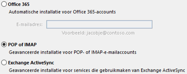 Je kiest voor een POP of IMAP email account, omdat we een IMAP verbinding gaan instellen.