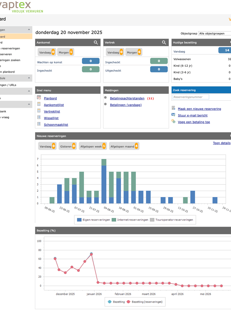 Alle boekingen direct live in je dashboard.